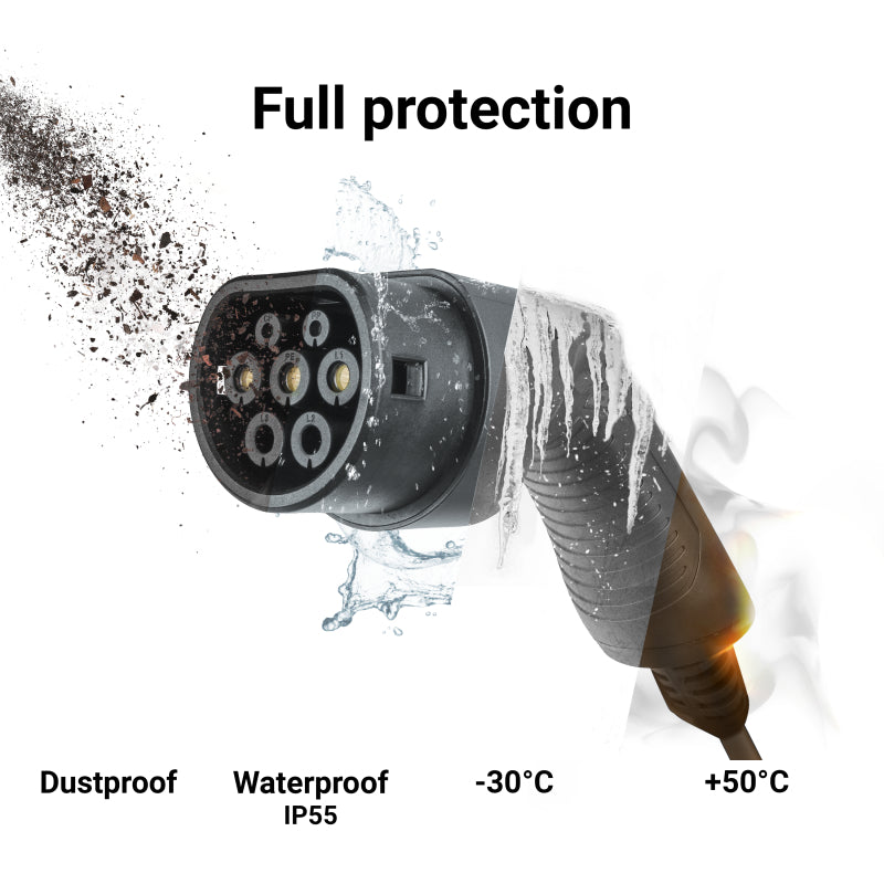 This cable allows you to charge all Electric Vehicles and Plug-In Hybrids with Type 2 connector (Mennekes)